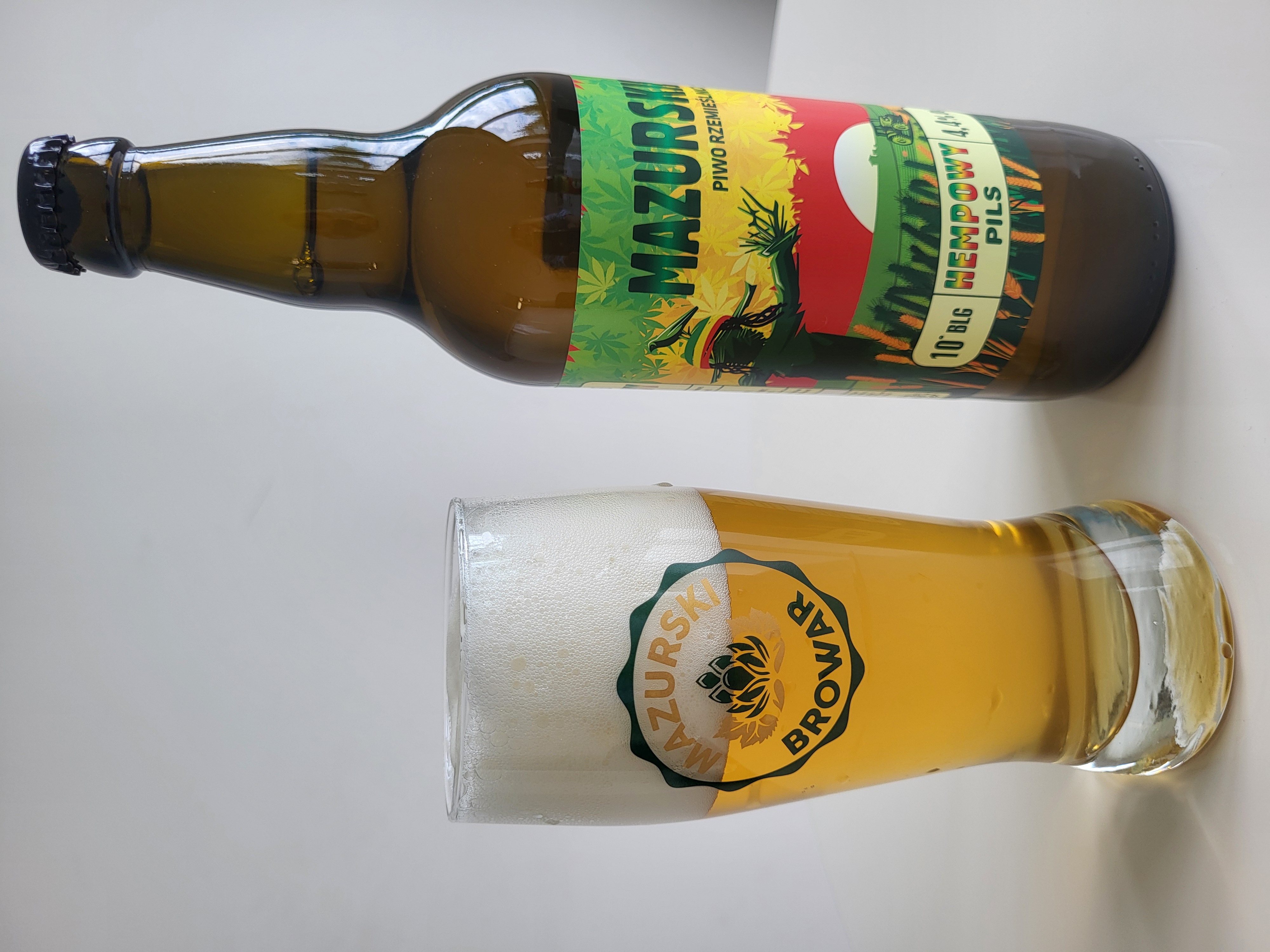 Mazurskie Pils Hempowy to wytrawny, lekki pils, chmielony wyłącznie dla uzyskania czystej, klasycznej goryczki. Aromat pochodzi głównie z dodatku suszu konopnego.